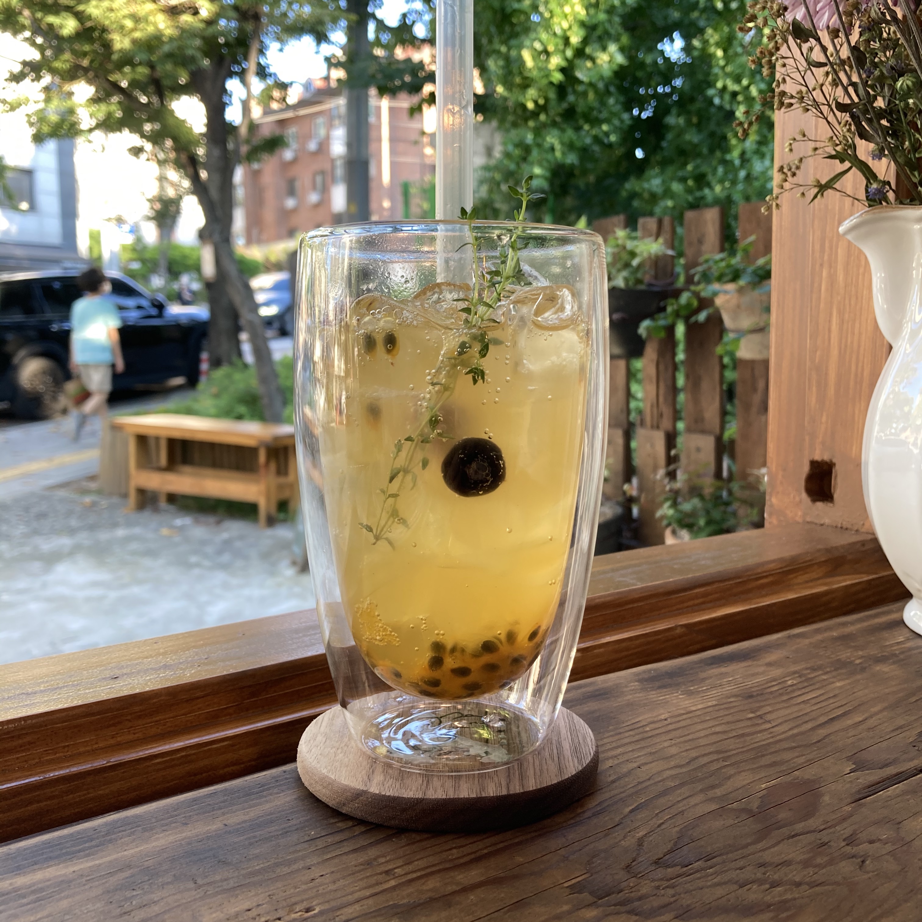 서촌의 오늘 개장한 '카페 모카'는, 커피도 맛있지만 직접 만든 패션후르츠 에이드가 훌륭했다. 정성 담은 기념 떡을 함께 내어 주셨다.