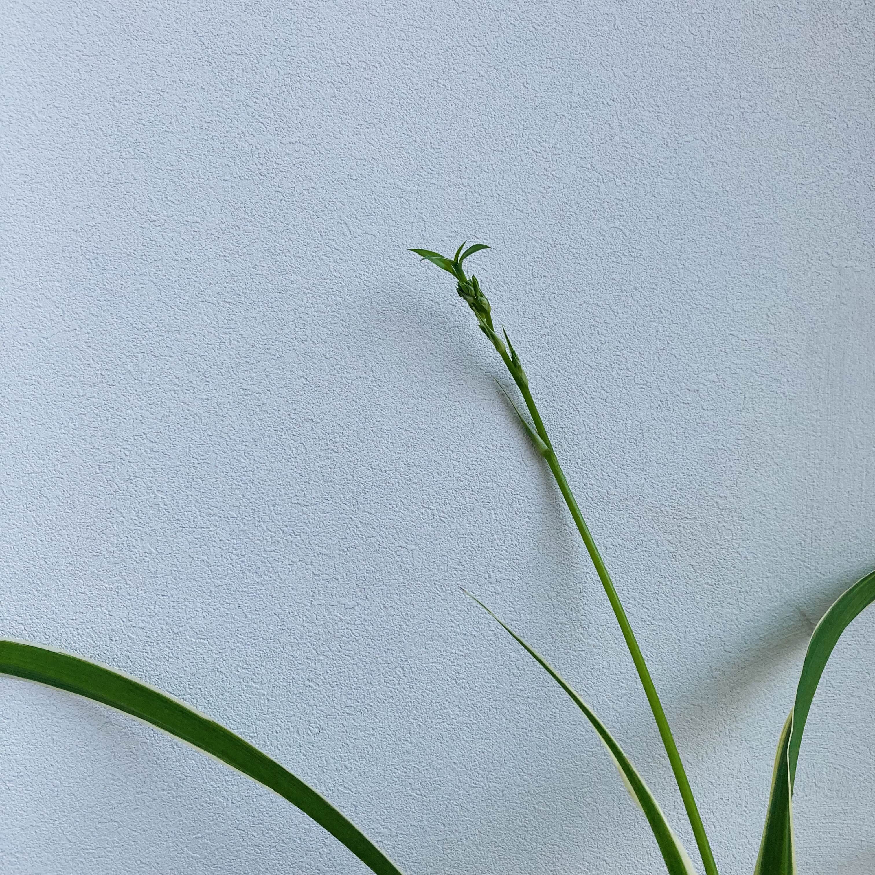 접란에 꽃대가 올라왔다.2년 전, 뿌리도 없이 작고 약한 모습으로 분양받았는데, 이만큼 자라 또 다른 새싹을 틔운다니 놀랍다.자연은 언제나 경이롭다.The chlorophytum has a flower stalk.