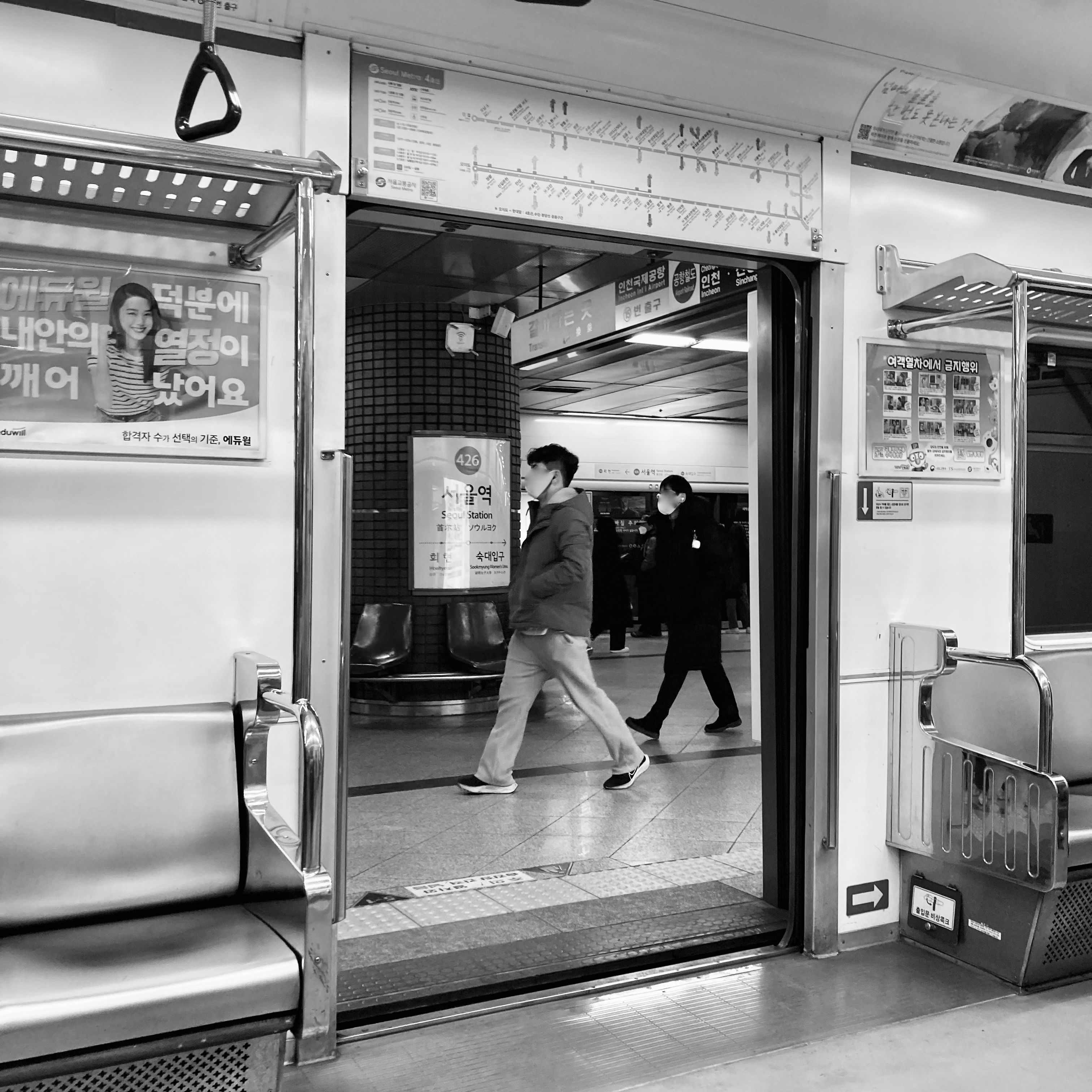 문이 닫히고 열리는 동안 역이 바뀐다.