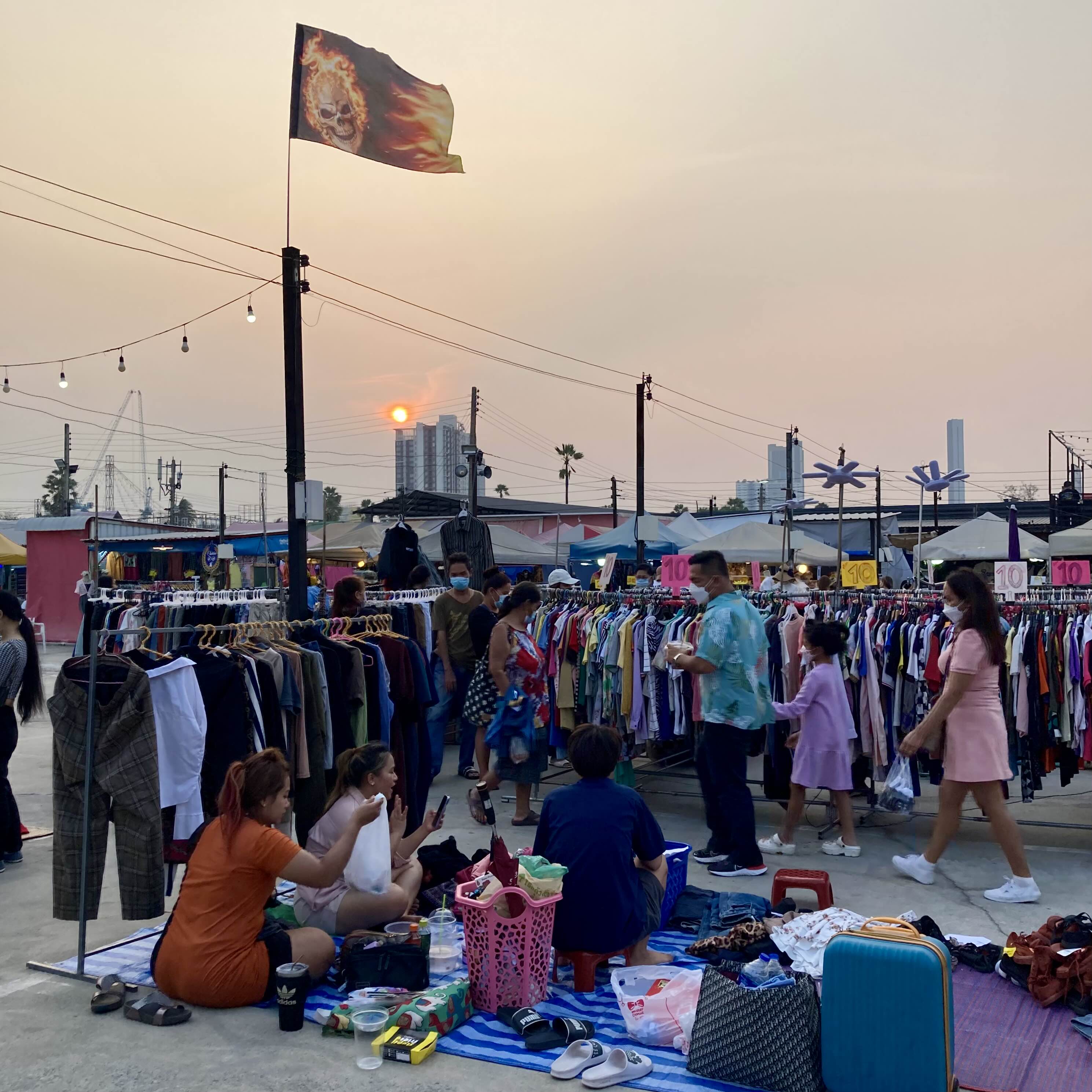 올빼미 야시장이 열렸다. 아무리 중고라지만 믿기지 않는 금액 10밧(380원)에 바지를 하나 샀다. 서로 옷을 골라주며 마구 깔깔거렸다.