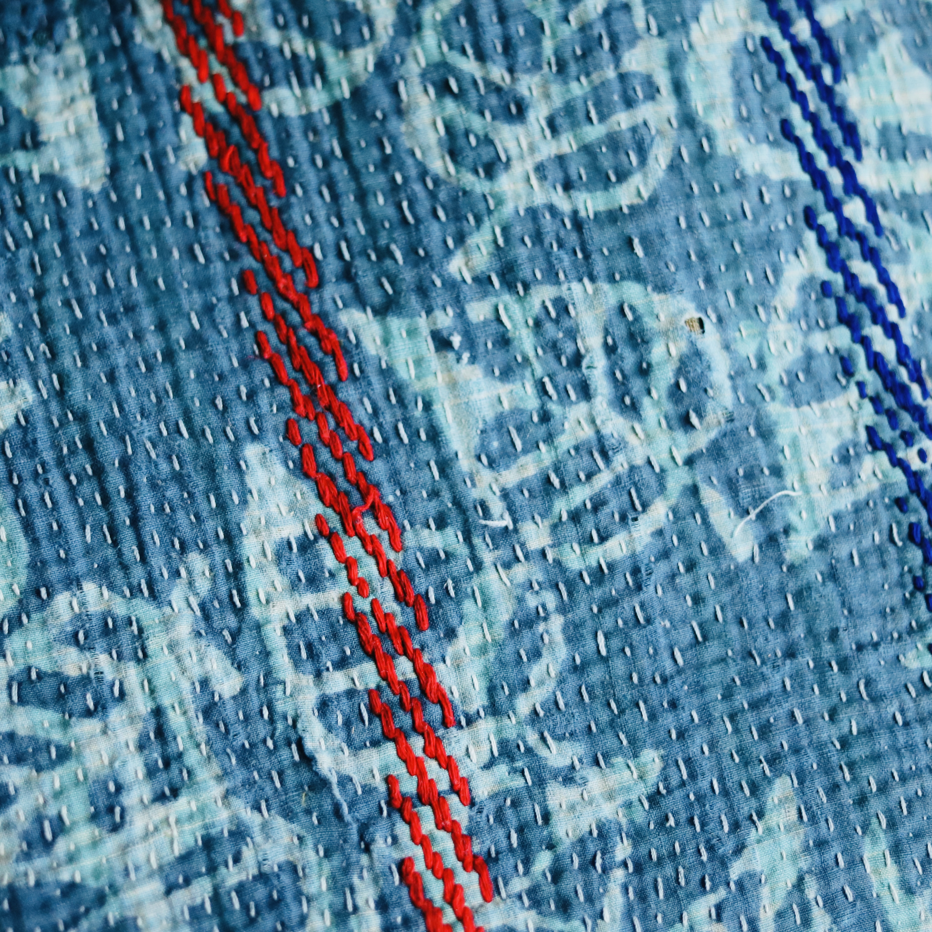 해지고 오래된 천을 여러 장 덧대고 손바느질해 만든 칸타는 인도 전통 자수 기법이다. 똑바르고 매끈하진 않지만 이야기와 시간이 깃들어 사랑스러운 칸타는 꼭 삶의 무늬 같다.