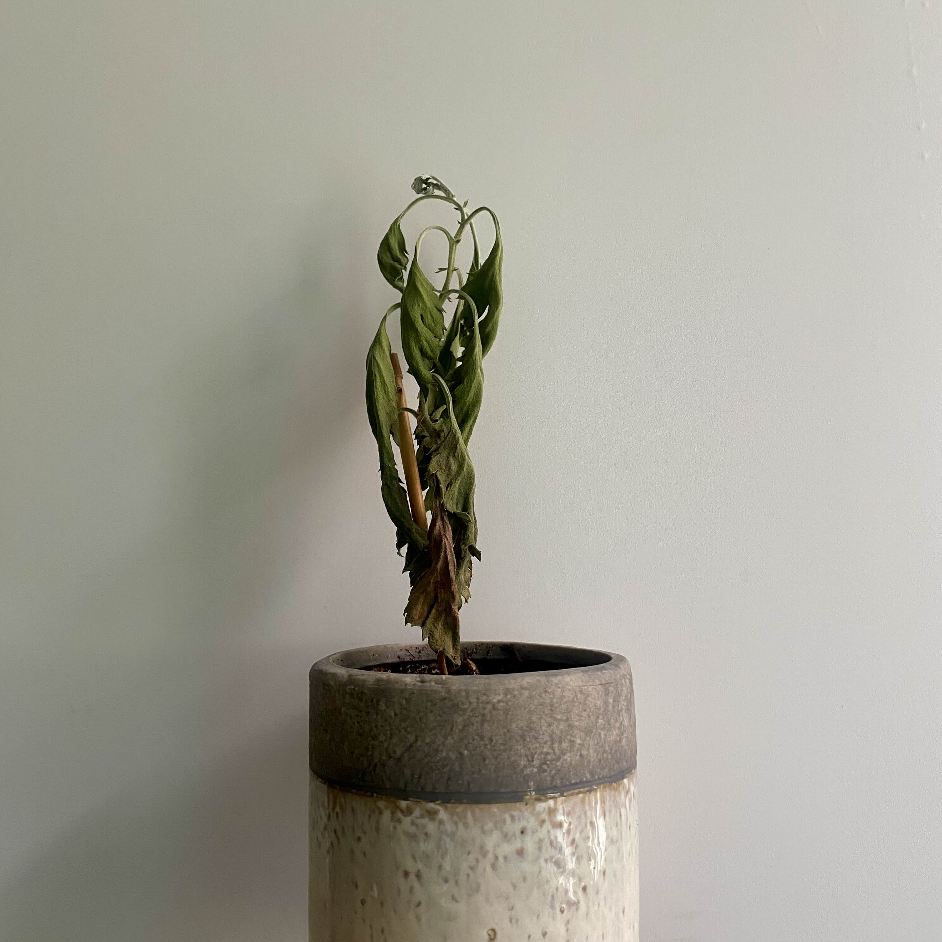 저면관수로 해두고 간 국화는 덥고 습한 환경 속에 과습으로 말라죽은 듯하다.