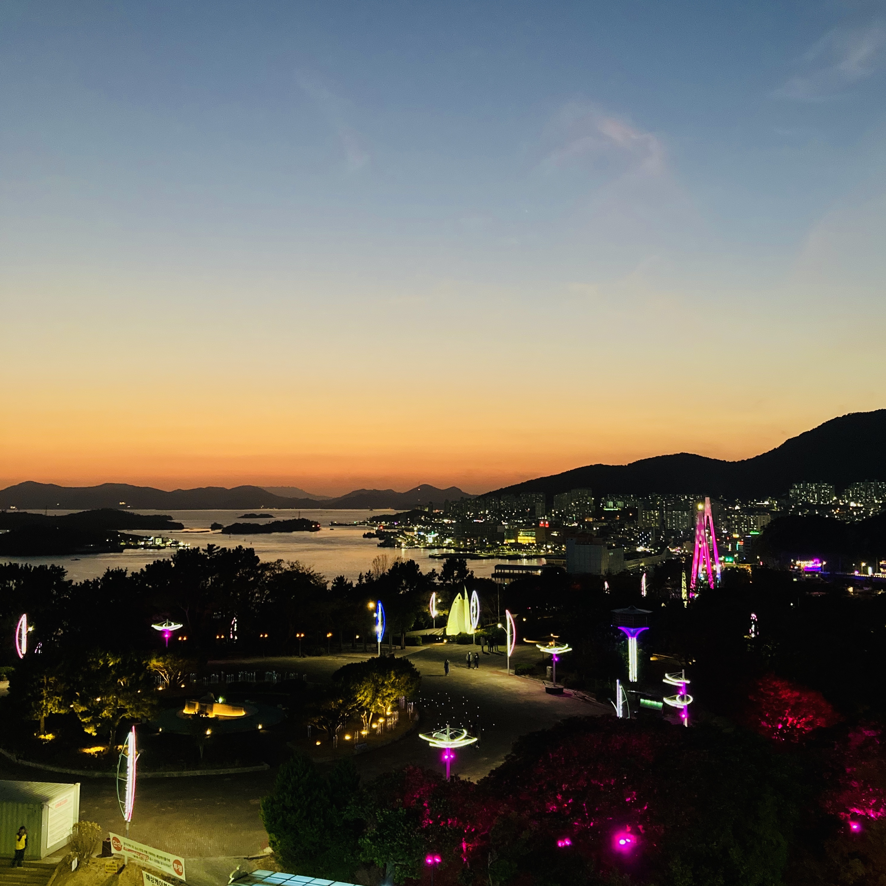 부러 맞춘 것도 아닌데 케이블카 안에서 바다 속으로 똑 떨어지는 해를 봤다. 뜨거운 일몰이었다.