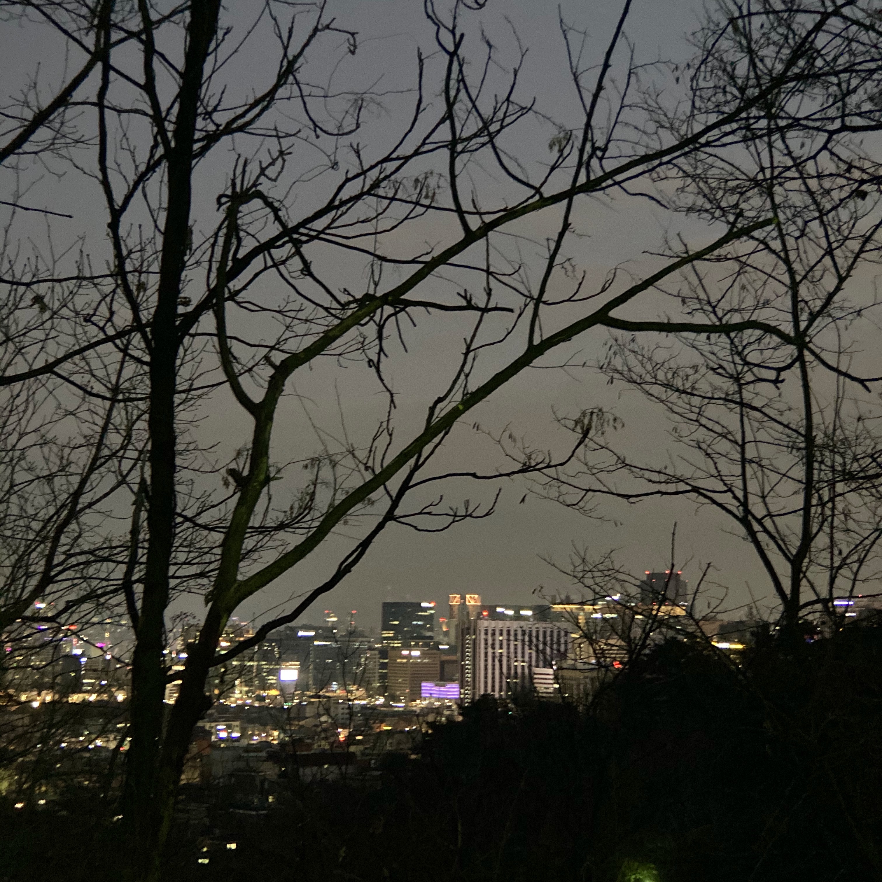 집으로 돌아오는 길, 산 아래 소원들이 별처럼 반짝였다.