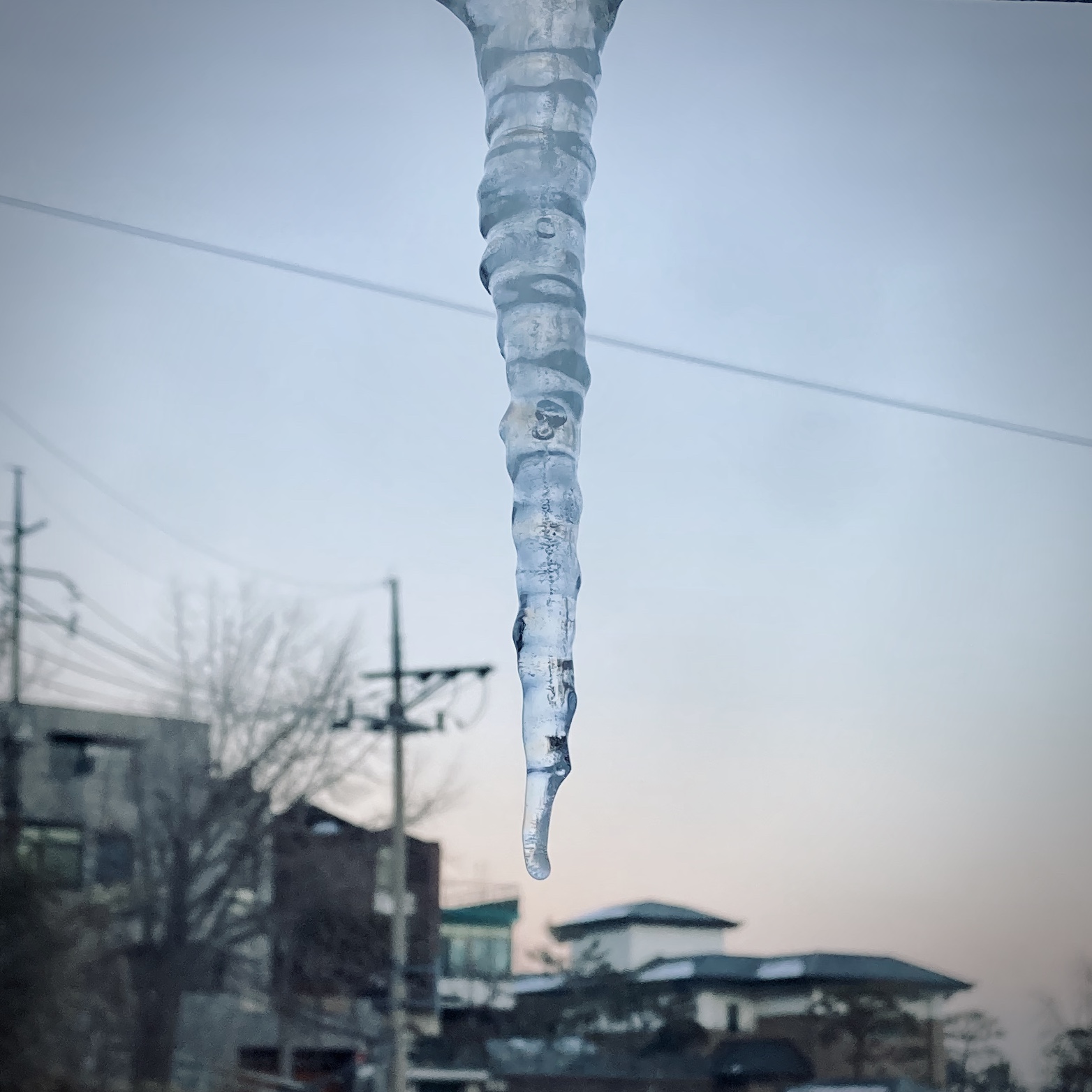 Heavy snow passed. There is icicle outside the window.